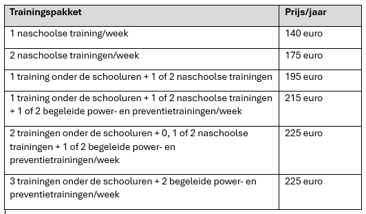 Kostprijs volleybaltrainingen 2025-2026